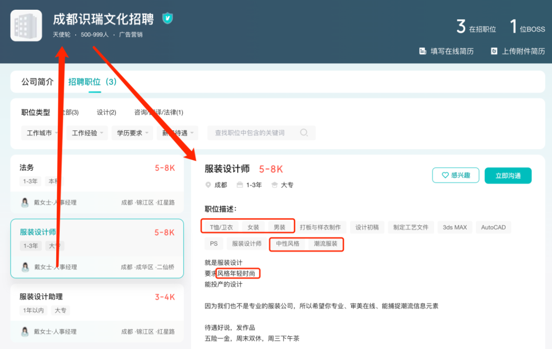 从识瑞文化的招聘JD来看,在招聘服装设计师,风格要求年轻时尚,与“东南们”的粉丝画像完全一致,可以预测,东南们后续的主要的变现方向为做服装。