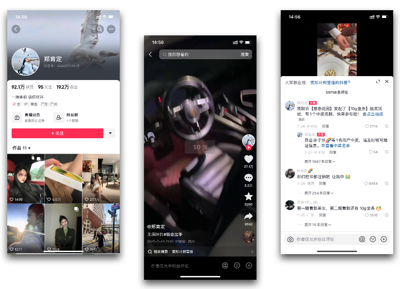郑肯定,11个作品,7月份开始转变风格,「炫富+福利」发布三条,粉丝达到19万!