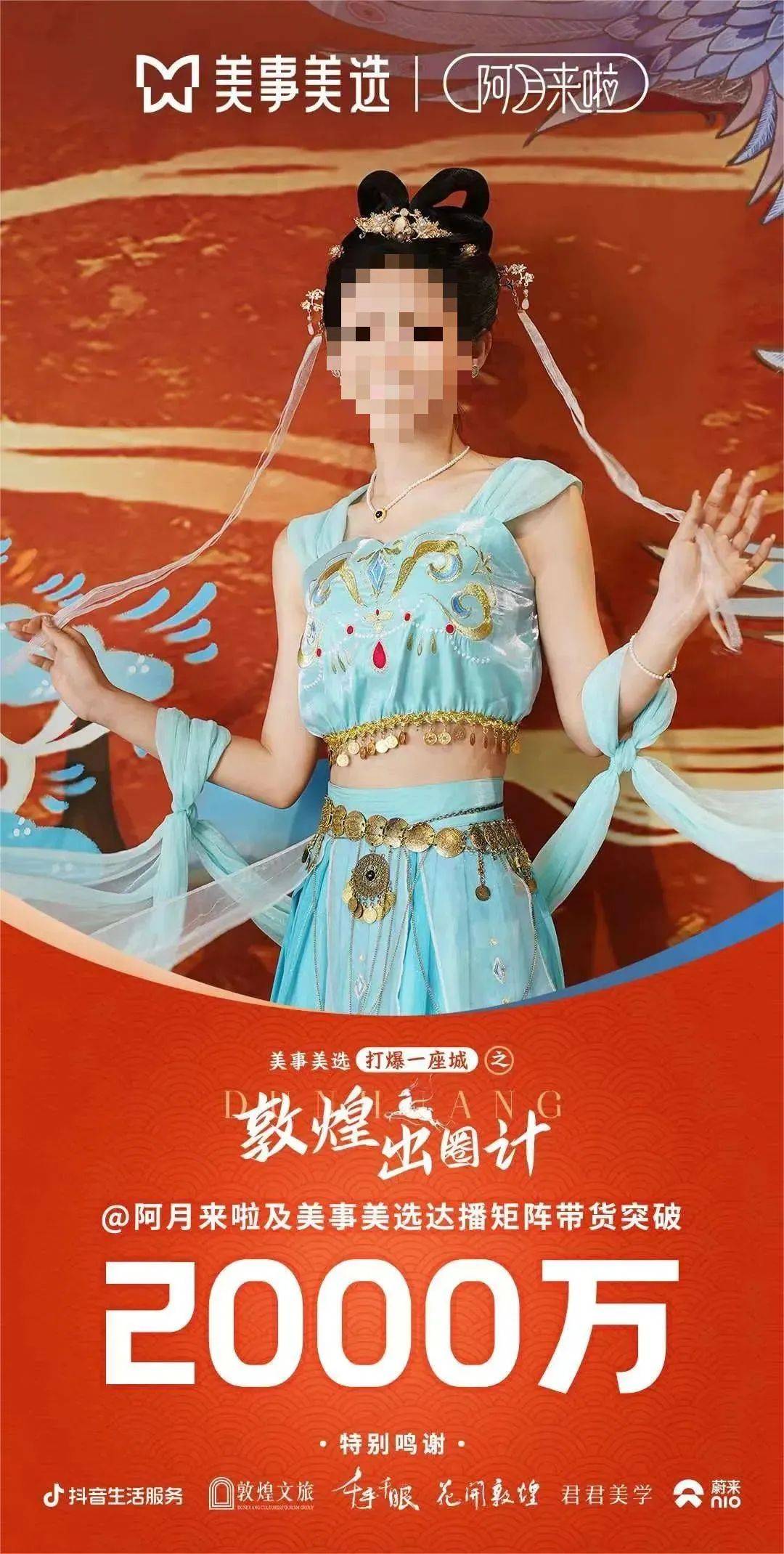 前段时间,一个名叫@阿月来啦的主播在敦煌搞了场文旅直播,结果这场为期三天的系列直播,吸引了 1600 万人次的观看,创造了GMV 超 2000 万的记录。
