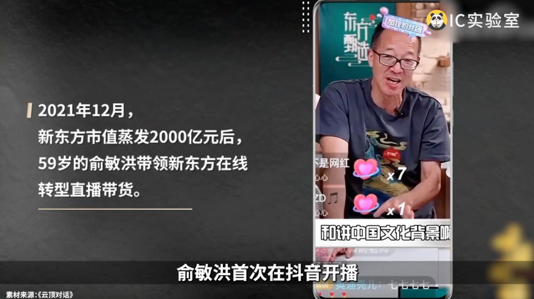 2021年12月,俞敏洪首次在抖音开播,宣布新东方转型直播带货。