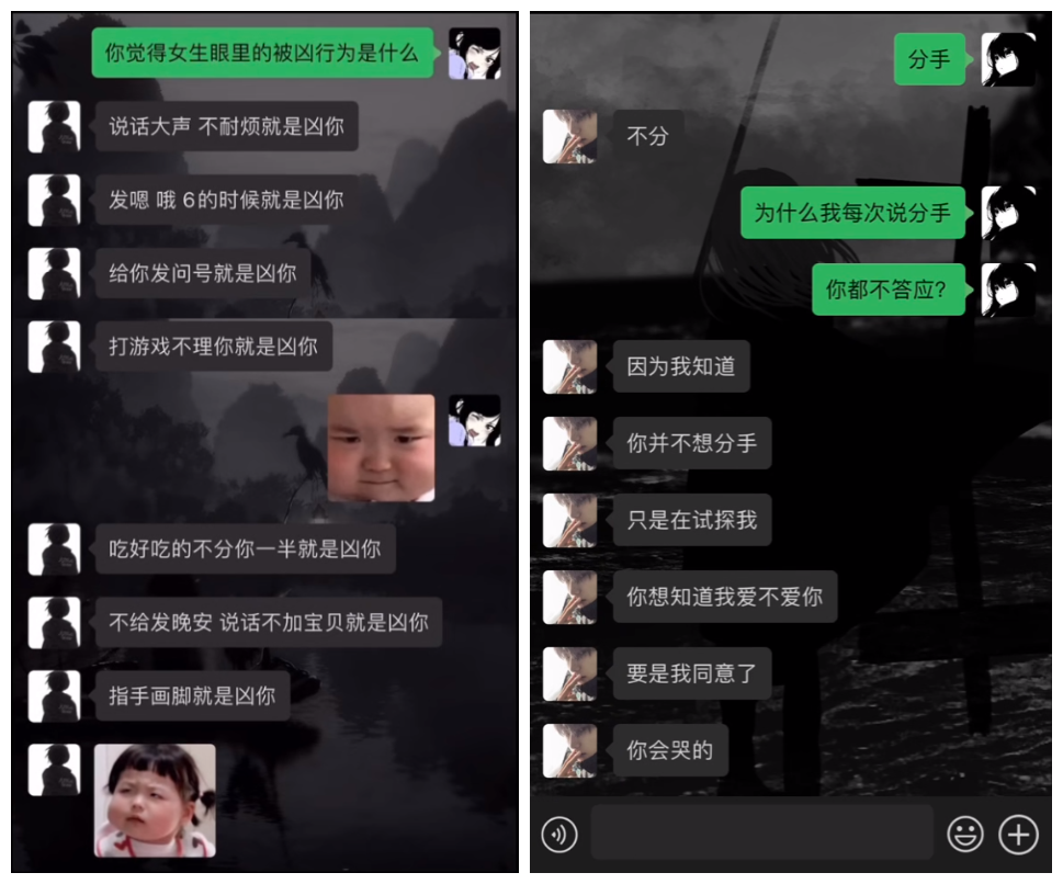 在观看聊天记录视频也好,聊天记录笔记也好,这些海量的情感对话截图,成为了替代满足感。替代性满足,指的是在无法获得某种需求满足时,人们会寻求其他方式来替代满足这种需求的行为。每一个聊天视频在用户看来都是故事,不同人格属性多替代满足的故事。