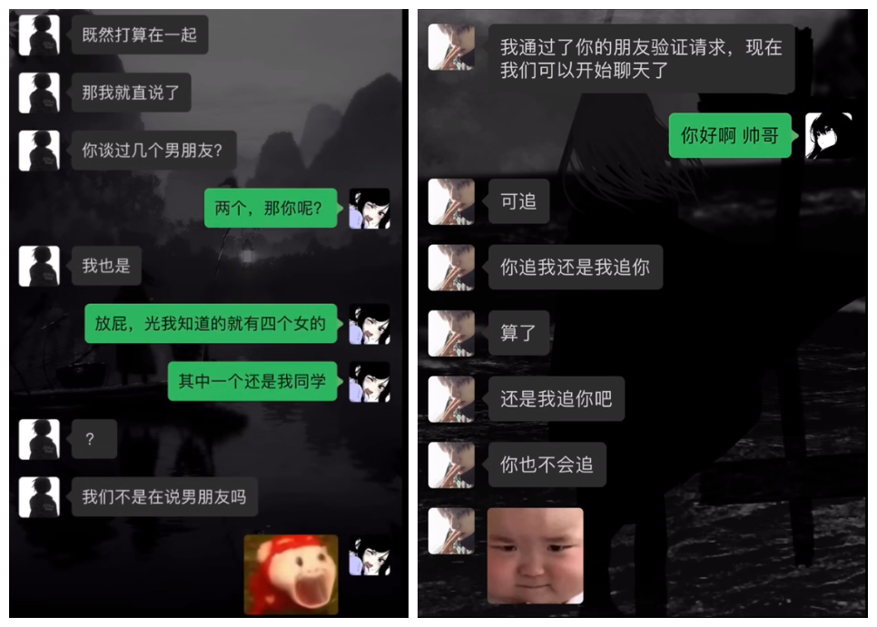 我们常常觉得情感属性的聊天记录,只存在年轻人之中,其实小到未成年,大到中年老年,都有不同的情感模样。90后上学的时候最流行的是火星文,00后最流行的就是“福尔摩斯密码式”的聊天……每个年龄都有每个年龄的对话符号,每个年龄有每个年龄的情感故事。