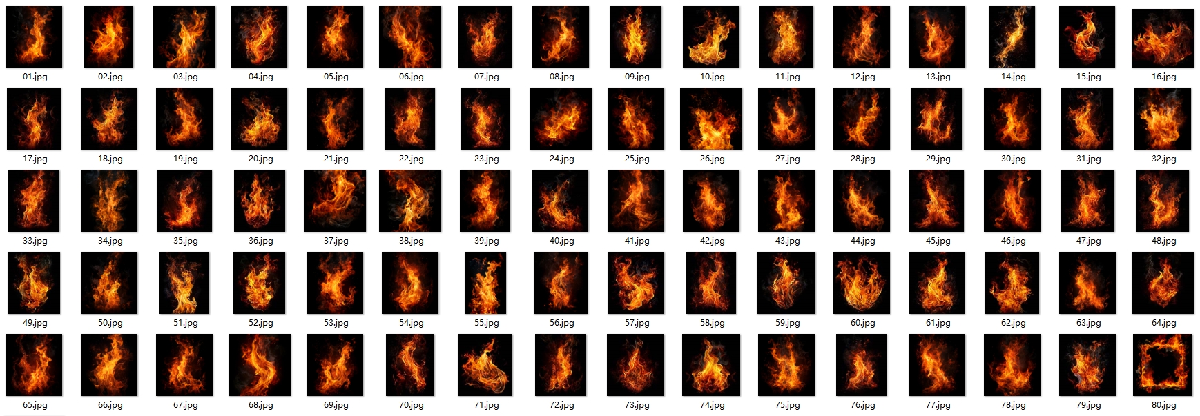 收集了一套火焰素材,全都是真实的火焰,一共100张,基本上都在4000分辨率以上,清晰度非常高,纯黑色背景,很容易抠图和融入到设计作品中,有各种各样的火焰样式可以挑选。