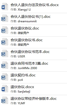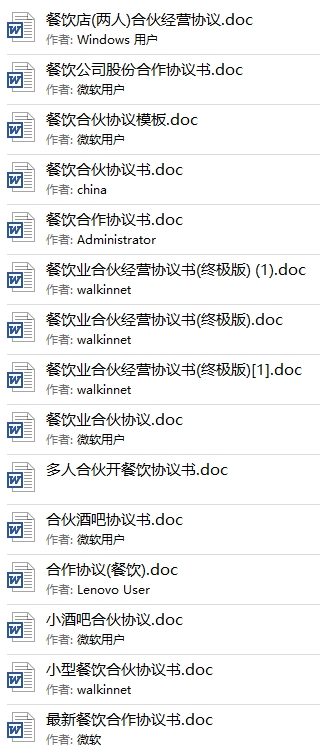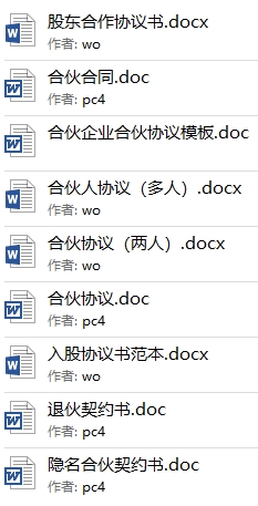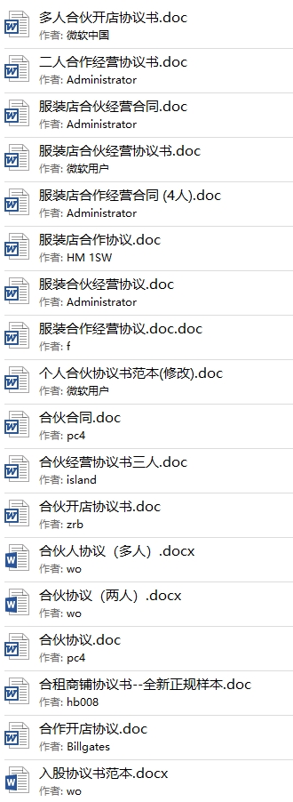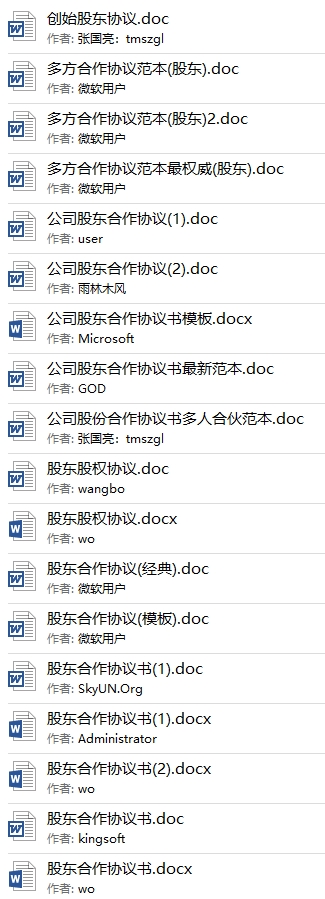 1000份各行各业合作创业股东协议合同模板目录│文件列表: