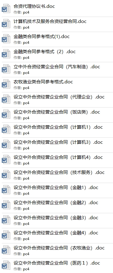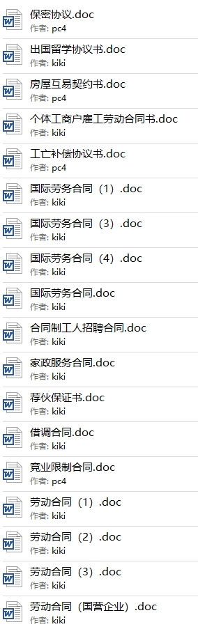 总之很不错的一套协议合同资料,不用到网上搜索一份份付钱下载了,这些完全够了。