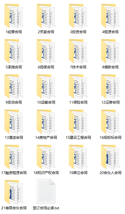 一套非常强大的合同协议契约书资源,包含1000多份文档,几乎做生意创业开公司所需要的大多数合同都可以在这里找到,这些合同基本都是word文档格式,支持编辑修改打印,都非常干净的文档,比如公司法律服务部门,在这个资源中有完整的一套协议框架。