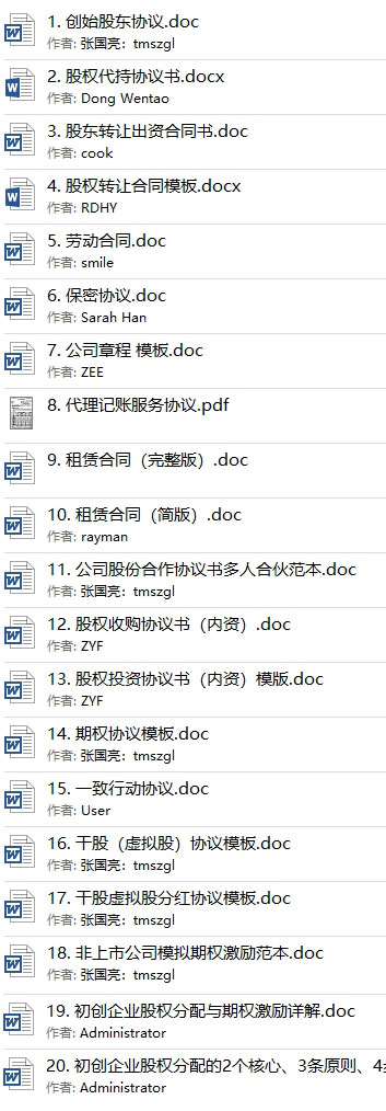 │ │ │ 20. 初创企业股权分配的2个核心、3条原则、4步落地、5大陷阱.doc