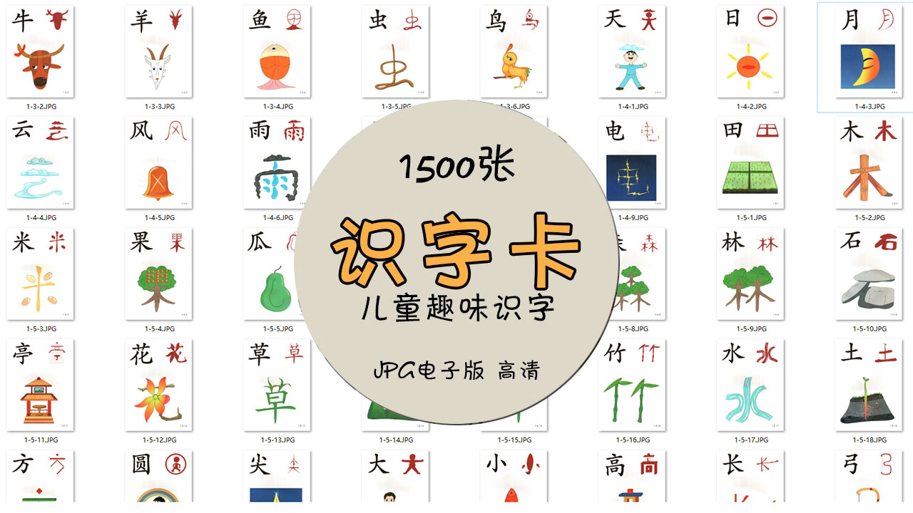 本套资料汇聚了精心设计的1500张高清图片卡片,覆盖了儿童日常生活中常见及基础学习的汉字与词汇。每张卡片均配以色彩鲜艳、形象生动的图案,将抽象的汉字转化为直观可感的视觉形象,让孩子们在欣赏美图的同时,自然而然地记住字形、理解字义,实现形象记忆与联想记忆的高效结合。