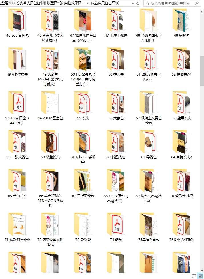 花了一些时间收集整理了这套皮革皮具设计制作的资料,内容很丰富,大量的设计制作案例和书籍资料给大家学习参考,解压后4G所有,3000多份资料,这些是你学习制作皮革皮具所需要了解的一切,还有大量的皮具效果图实物图等,能不能成为大师不保证,但是成为一个专业的皮革人士应该没问题。