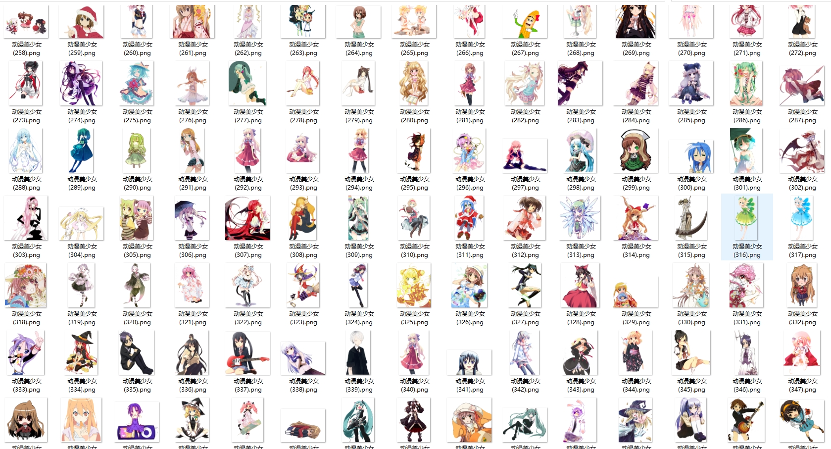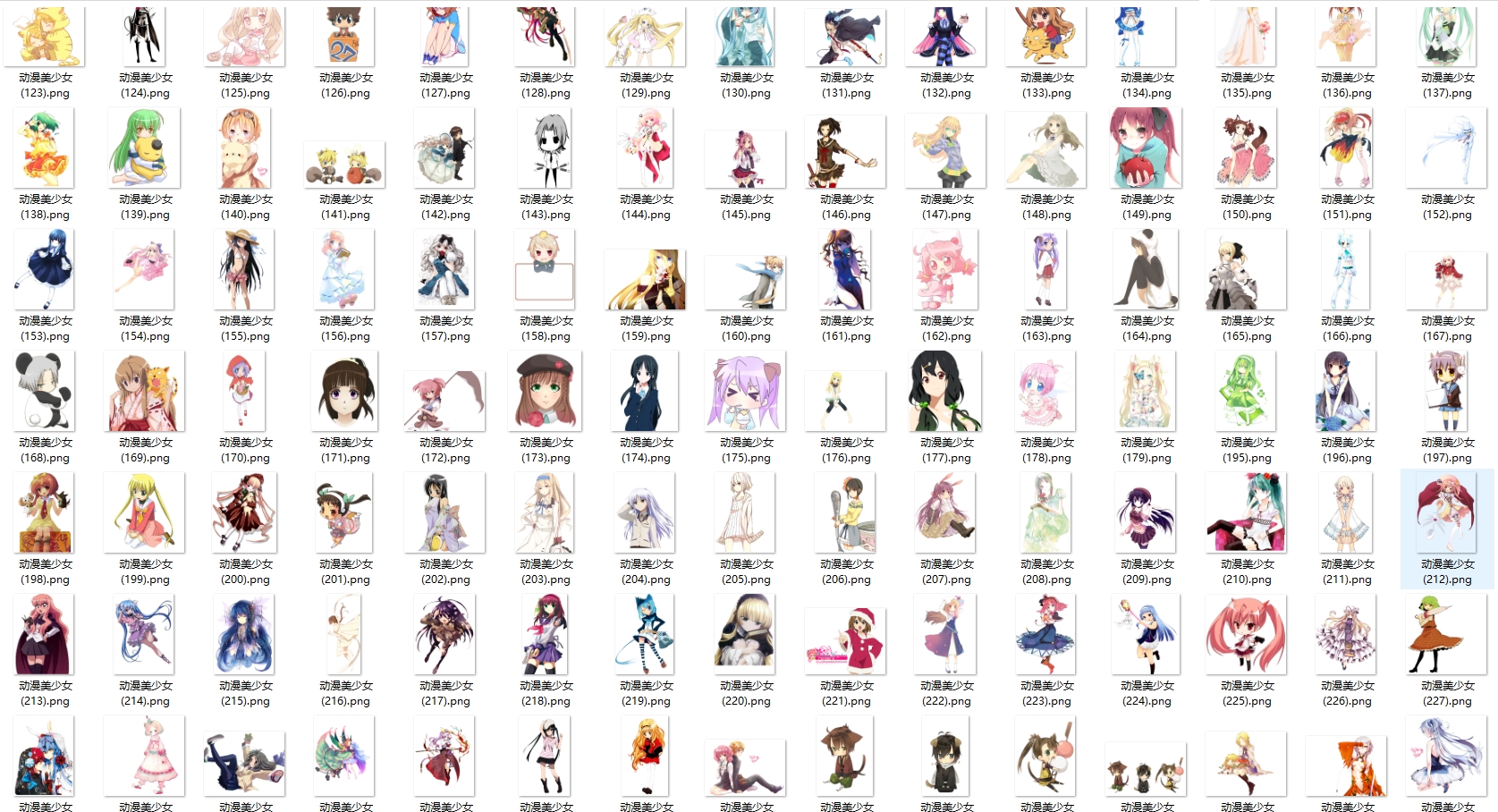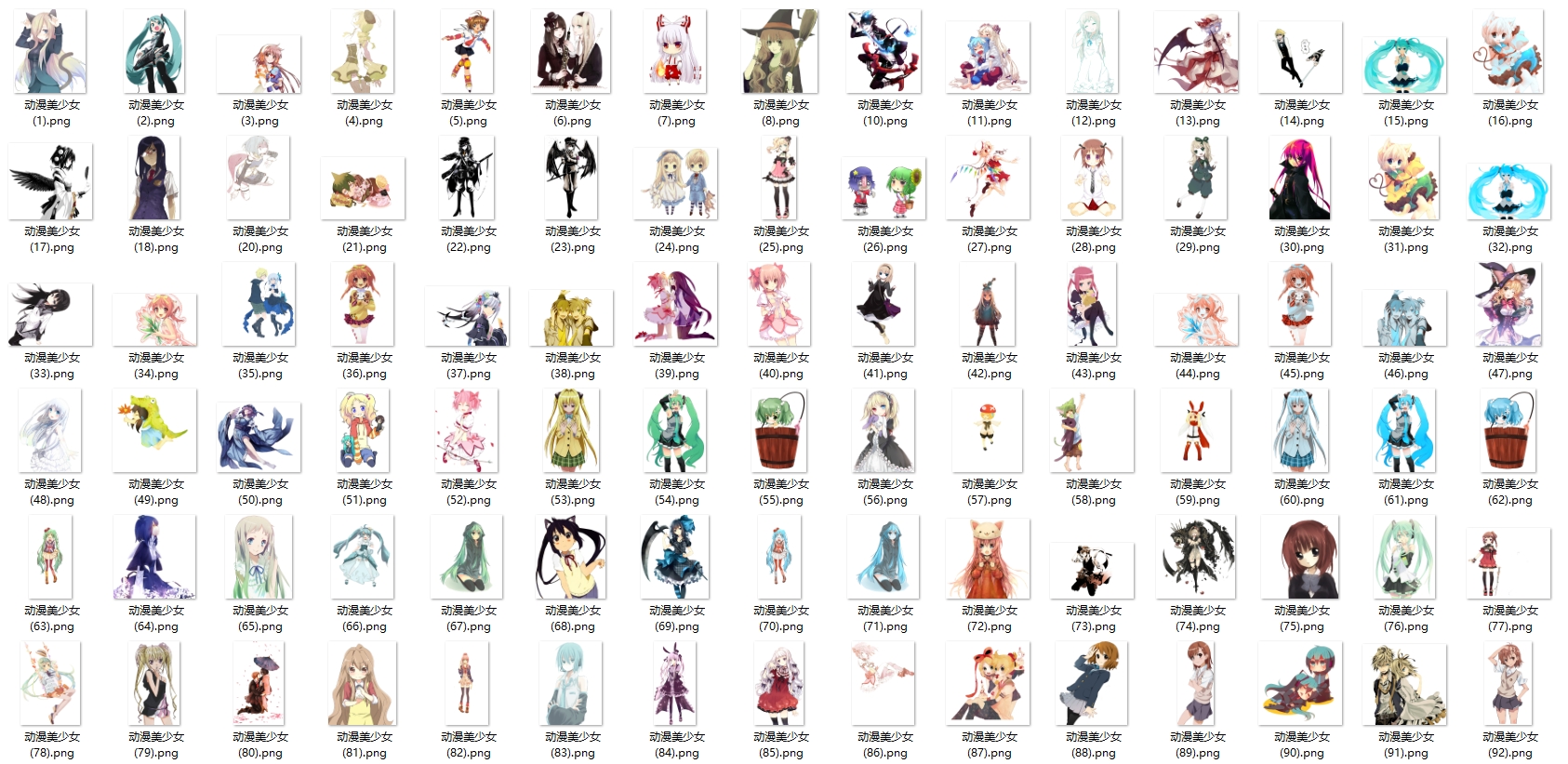 今天给大家分享的这套是动漫美少女png图。