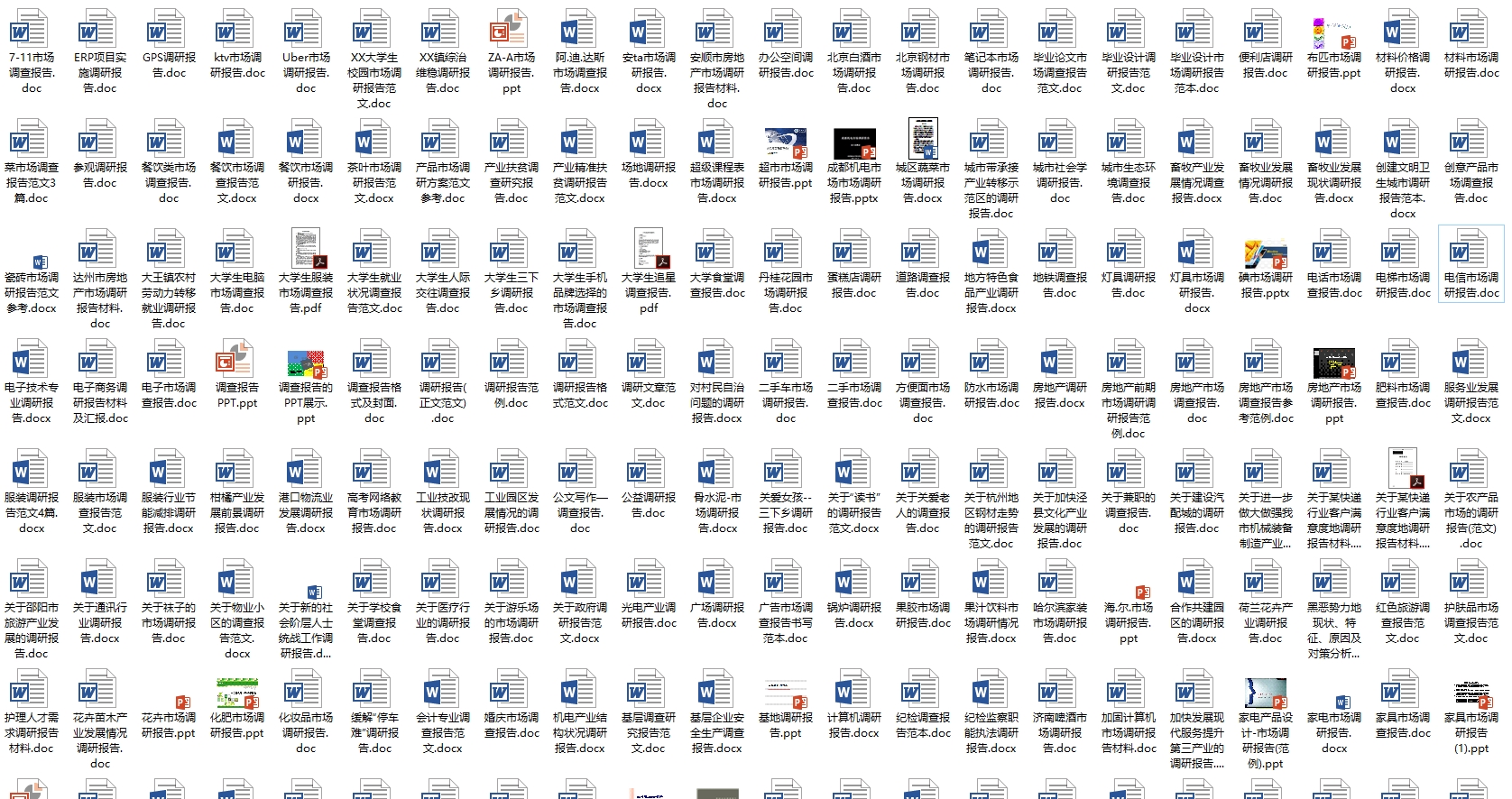 这套【各行业388份市场调查调研报告材料范文打包】资源非常强大,因为它包含了很多行业领域,甚至有些非常知名品牌的市场调研报告都有,材料的数量更是将近400份了,粗略挑选了一些看了一下,整体质量都很不错,具有很高的参考价值,绝对是你写市场调研报告的绝佳参考材料。有些网站或者文库将这些资料单篇分享,每篇收费几块到十多块不等,本站直接打包给大家了,喜欢的赶紧收藏吧。