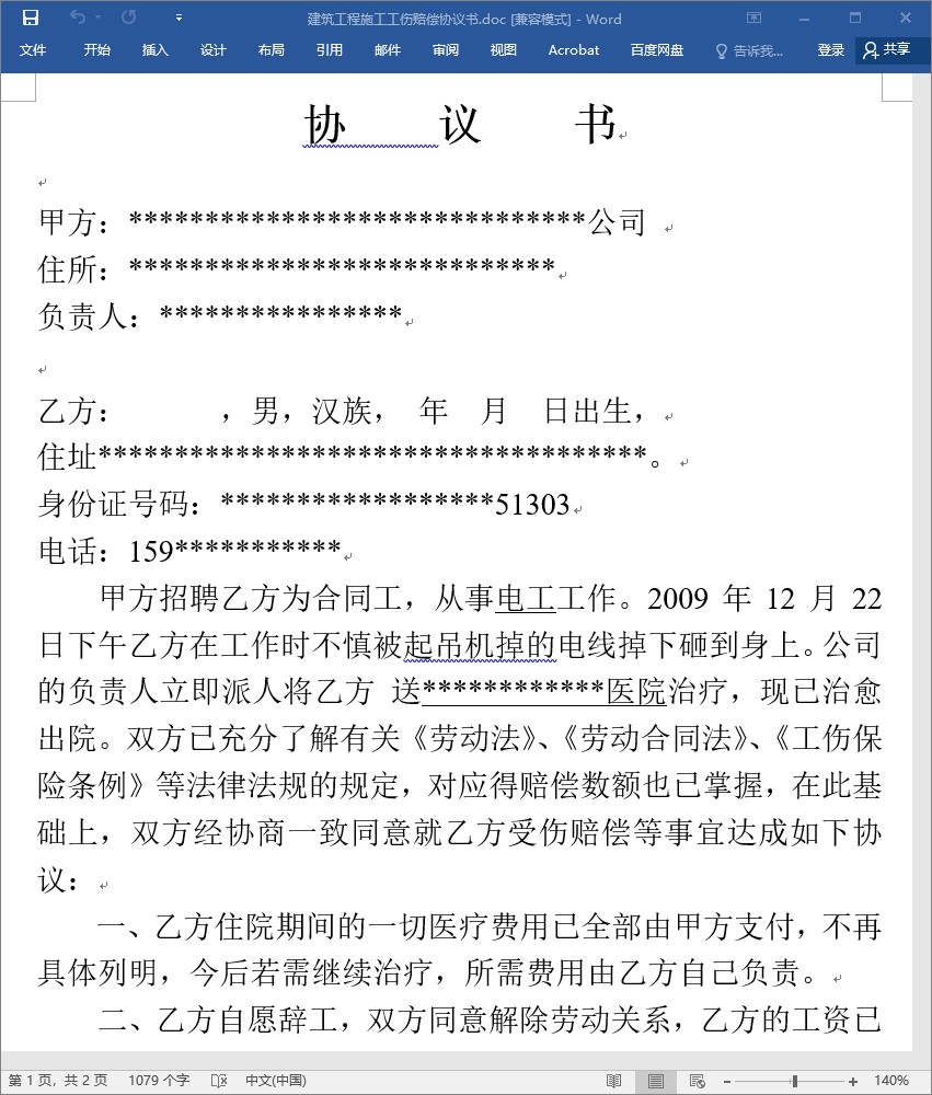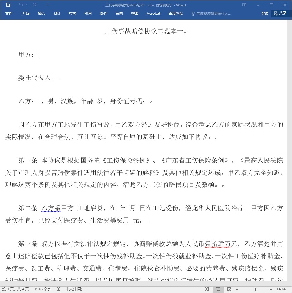 特别针对工伤事故处理,资料中提供了详尽的赔偿协议方案模板,涵盖事故认定、责任划分、医疗费用、工伤津贴、伤残赔偿等多个关键环节,帮助企业快速响应,妥善处理,保障员工权益的同时,也维护了企业的合法权益与声誉。