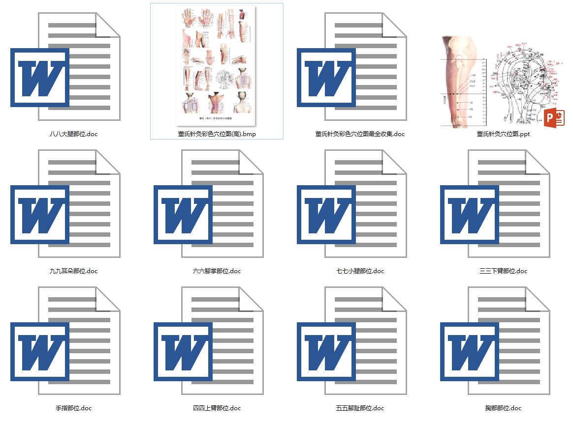 最全董氏奇穴身体各部分穴位图打包下载资料目录