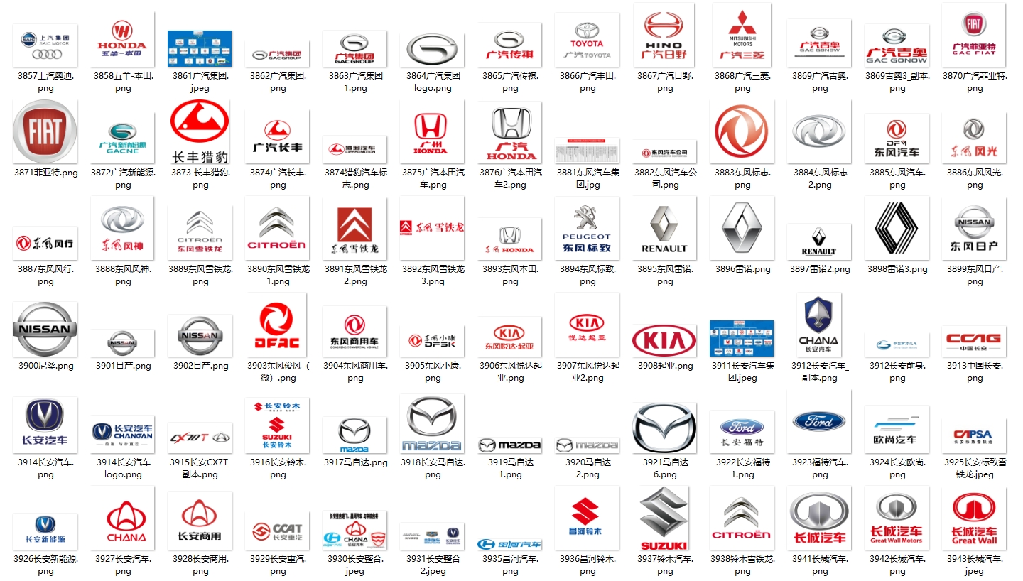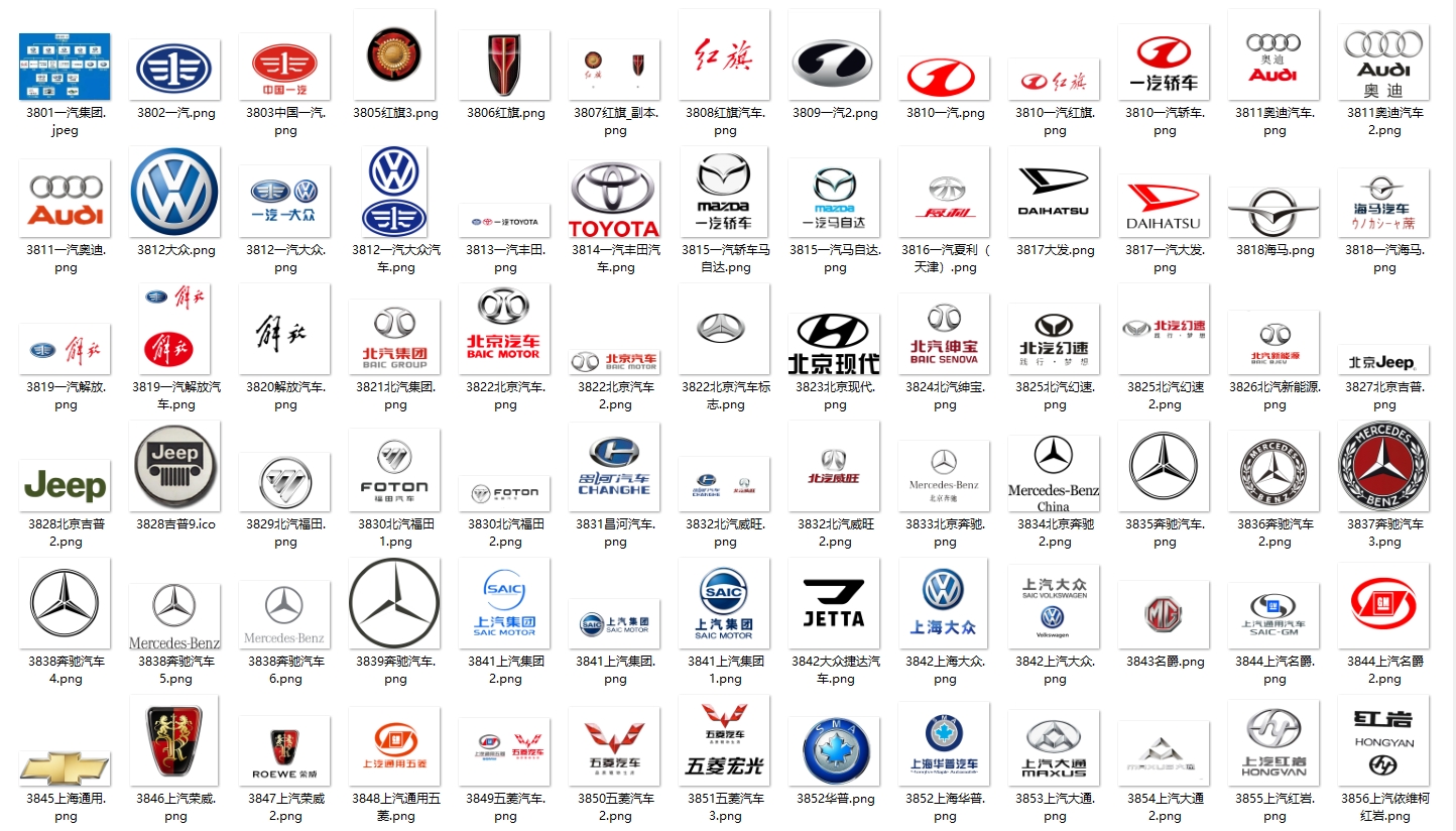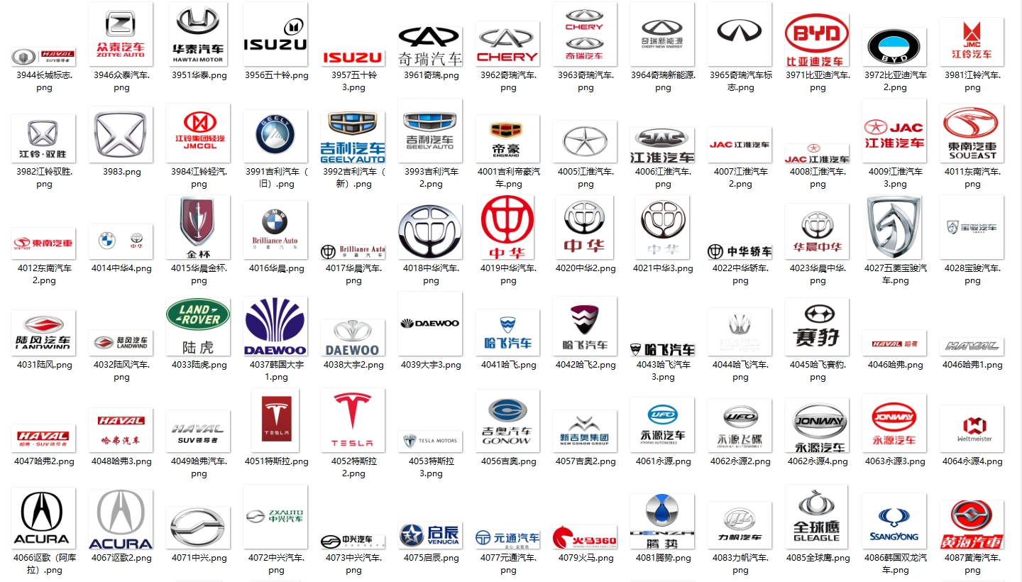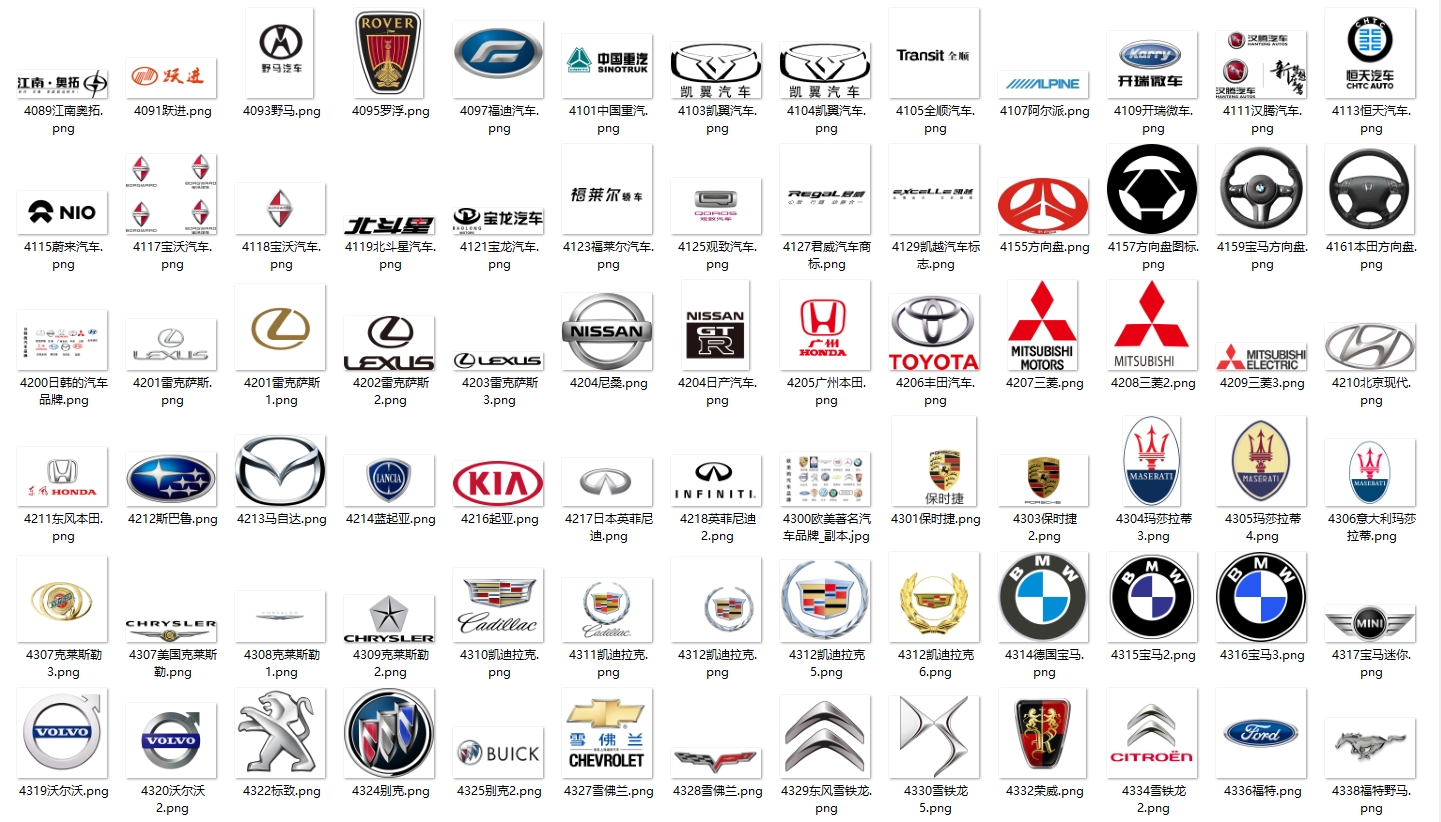 全套高清汽车品牌LOGO透明PNG图片图标素材打包目录