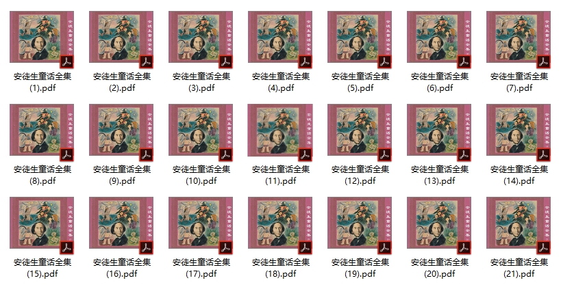 一共21册PDF,这个是早期的图文版《安徒生童话》,是一个值得收藏的版本,虽然画质上比不上现在这些彩图版,但内容是精编的,没有过度删减。