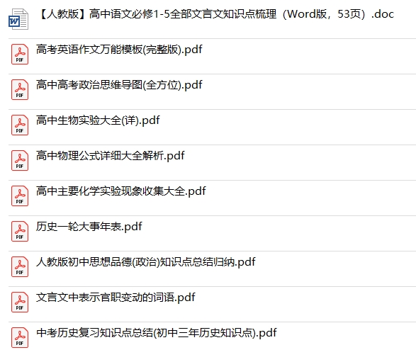 中考和高考各科必考学习资料高度总结知识文档打包下载目录│文件列表: