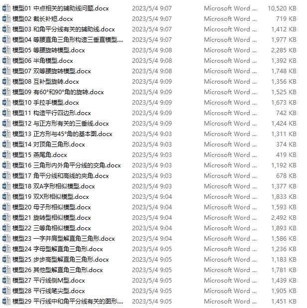 这些文档会帮助孩子解决中学数学上那些个比较困难的几何问题,这些文档的讲解比较独特具体,很详细。一共29个文档,每个文档都针对性的解决了一类问题,不是一个问题,是一大类。非常有帮助的一些文档,或许这些几何文档能帮你的孩子提不少分数呢。