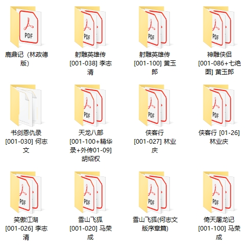 完整版《金庸》武侠小说+漫画+音频+鉴赏宝典全套下载目录│文件列表: