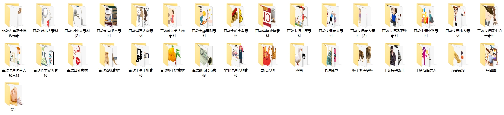 下面的目录是大目录,下面一层就是文件了,一共3300多款png透明图片。