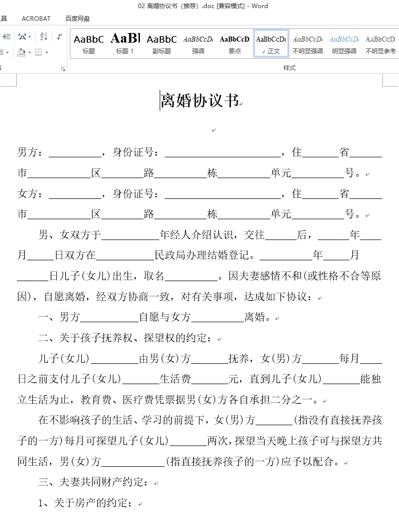 ├有无子女离婚协议模板