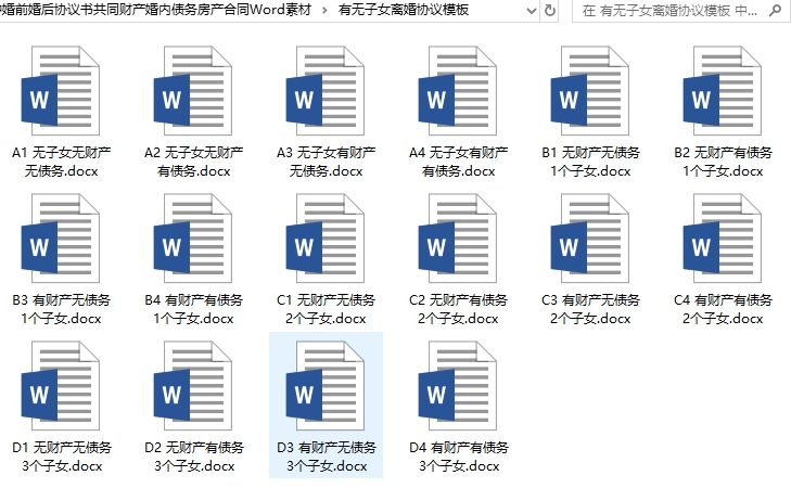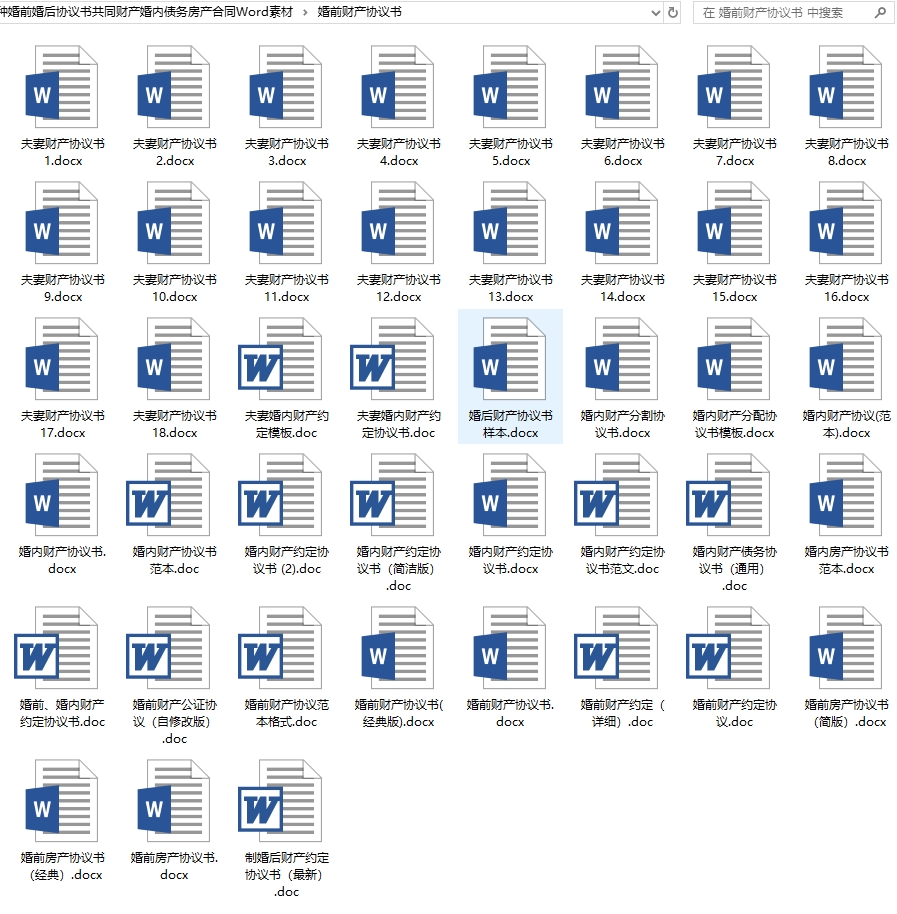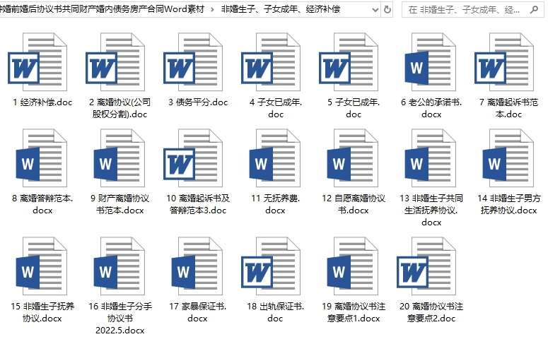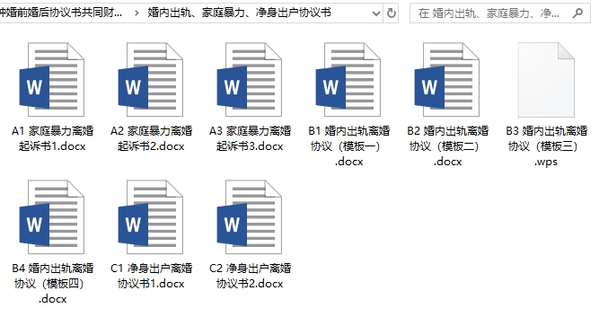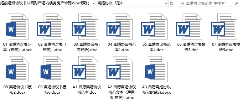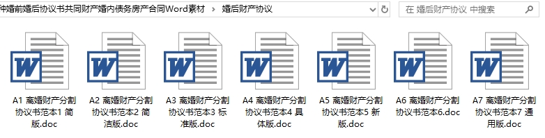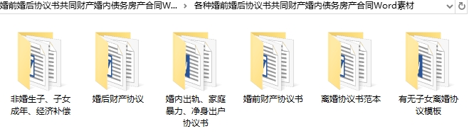 各种婚前婚后协议书共同财产婚内债务房产合同Word素材目录│文件列表: