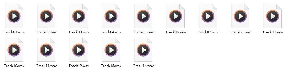 其中一套是14首wav无损格式音乐,总体积479M,平均30多M一首,音质非常棒,文件名称没有标记曲名。