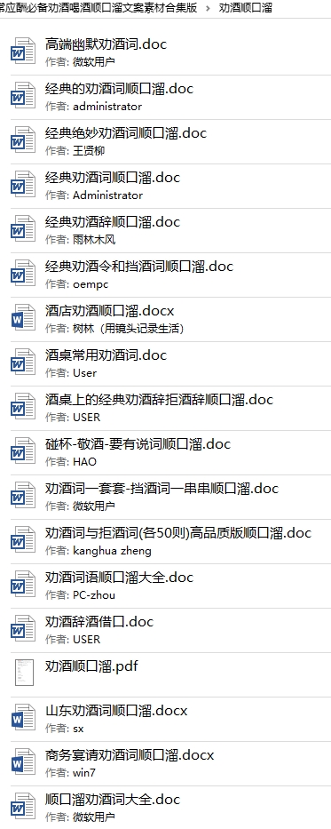 │ └ 劝酒词顺口溜大全.doc
