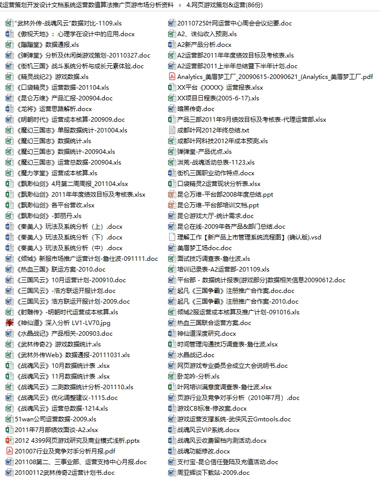 游戏运营策划开发设计文档系统运营数值算法推广页游市场分析资料目录│文件列表: