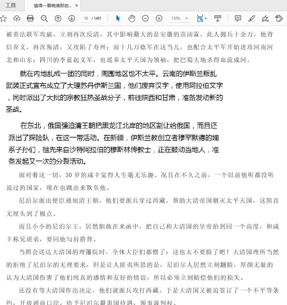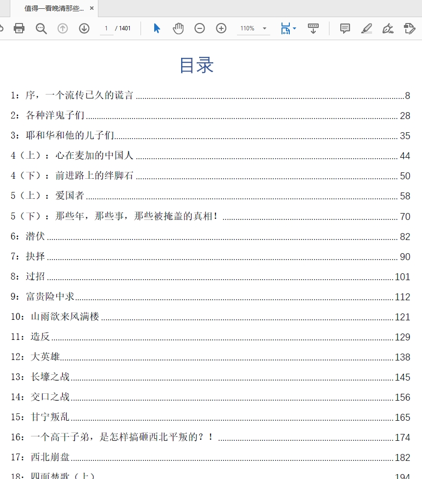 值得一看晚清那些离奇沧桑的历史故事电子书,这是一本1400多页的PDF书籍,里面讲了大量晚清历史故事,很多你可能都没有听过,甚至有一些非常的离奇,有点像三国时代那种全雄乱舞的节奏,确实是每个时代都有牛人牛事。