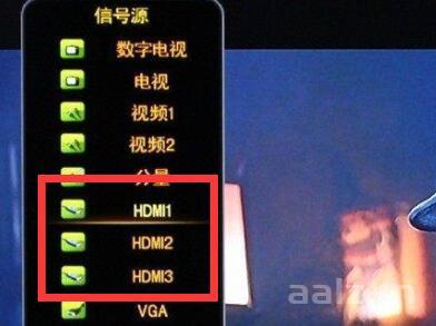 3、然后将信号源切换到hdmi,最好每个都试试看。