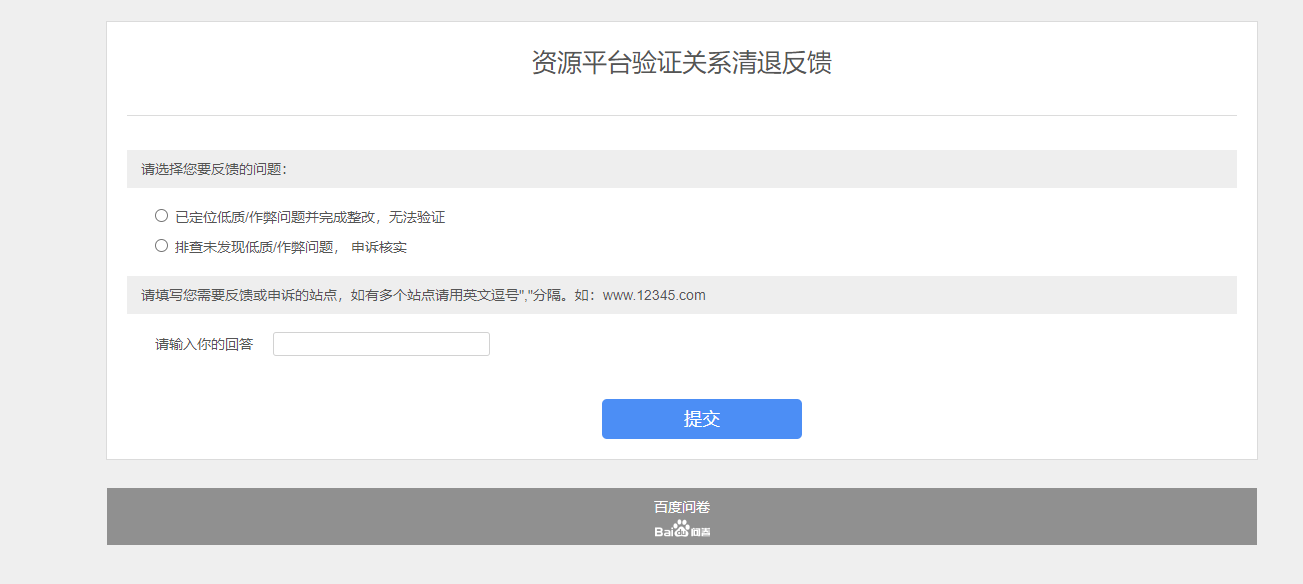 面对被评为低质量站点,我们需要做的就是根据百度发布的:《百度搜索违规低质页面问题说明》的具体内容来查看分析并找出我们的站点时违反了哪些规则,然后根据这个规则进行修改调整,做完修改之后再优化一下用户体验,研究一下用户的需求,然后根据用户的需求还定制我们的网站内容。做完这些之后,提交给百度申诉反馈。剩下的就是做好后续的更新,等待百度的问题反馈就行了。我们只要坚持做好网站的高质量内容更新,和坚持优化用户体验为主,我相信我们的站点会更快恢复,甚至会越来越好的。