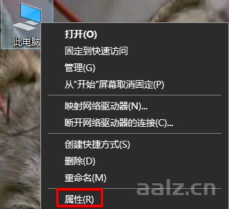 1、首先在 Win10 桌面的“此电脑”图标上,右键鼠标,然后点击打开“属性”