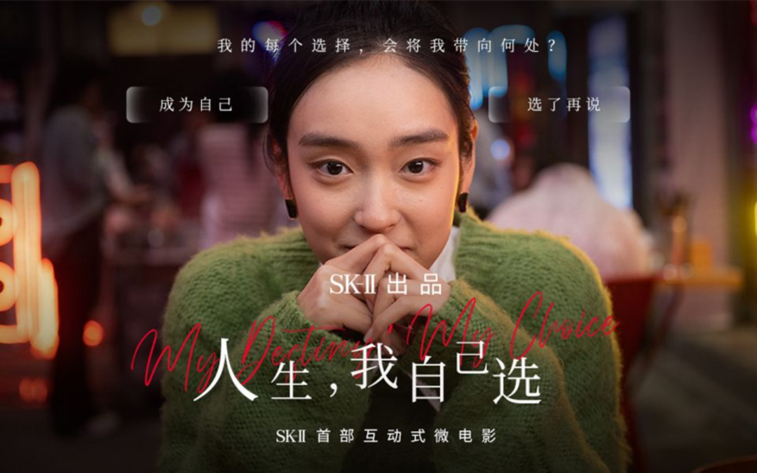 SK-II无疑是抓住这阵风潮的品牌之一。今年8月,护肤品牌SK-II基于平台特色,上线了一支特殊的互动影像纪录片《人生,我自己选》。在这支总时长超过1小时、拥有无数分支剧情的互动视频重,用户将以第一视角重走人生,将每一次关键节点的选择权牢牢握在手中,在事业、爱情之间作出取舍,每一次选择项的变动都可能导向不同的结局。