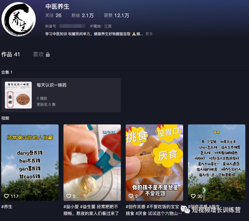 账号主页:分享养生知识、产品介绍、预约服务等。