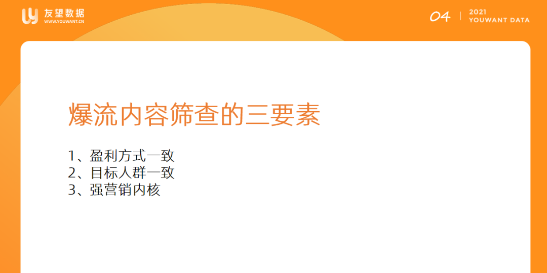 筛查爆流视频的重要的三个维度,并不是说所有的视频它爆了,然后跟你的关键词相关了,你就要去抄它的,因为很多视频可能爆完之后,它的变现能力并不好。我们做所有视频的出发点跟落脚点都是在变现上。