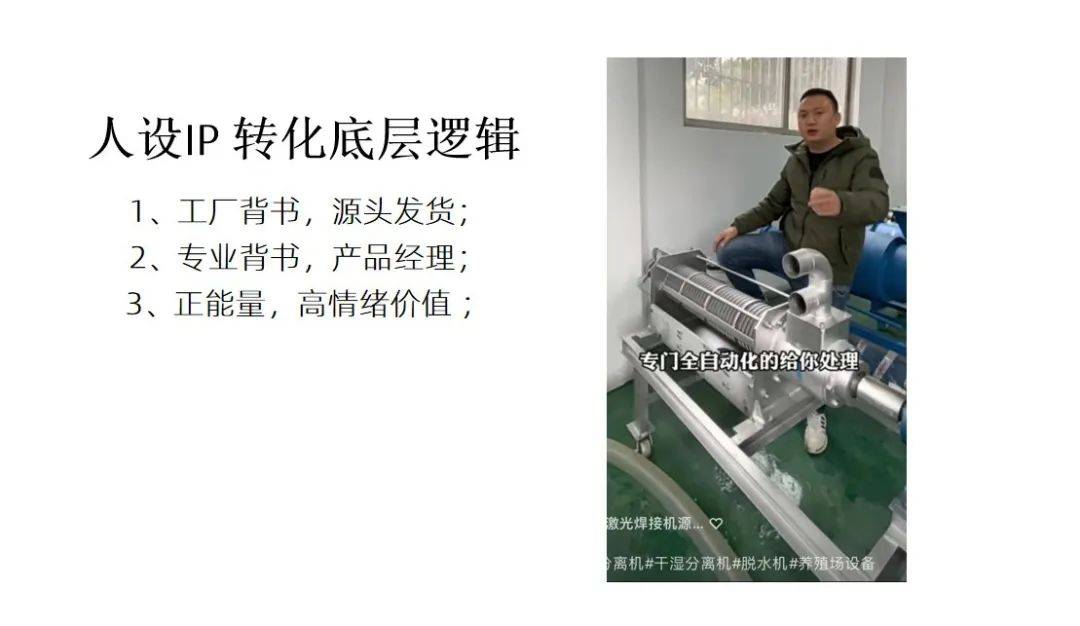 人设IP促进销售转化的第二个核心要素是专业的内容。你是一个工厂的厂长,同时你对产品极其的熟悉,极其的专业信任,再加上专业,就容易促成成交。