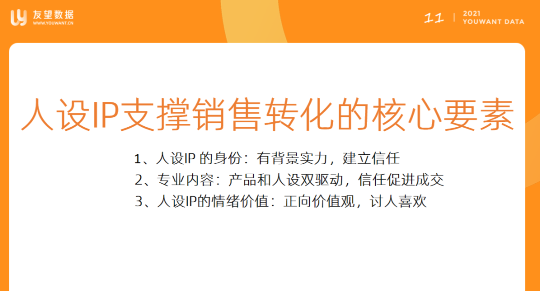 人设IP是能够支撑销售转化的,所以你看到现在很多的机构都在做商业IP,是有它的道理的,因为一个商业IP,确实能够帮助你很好的转化你的产品跟销售。