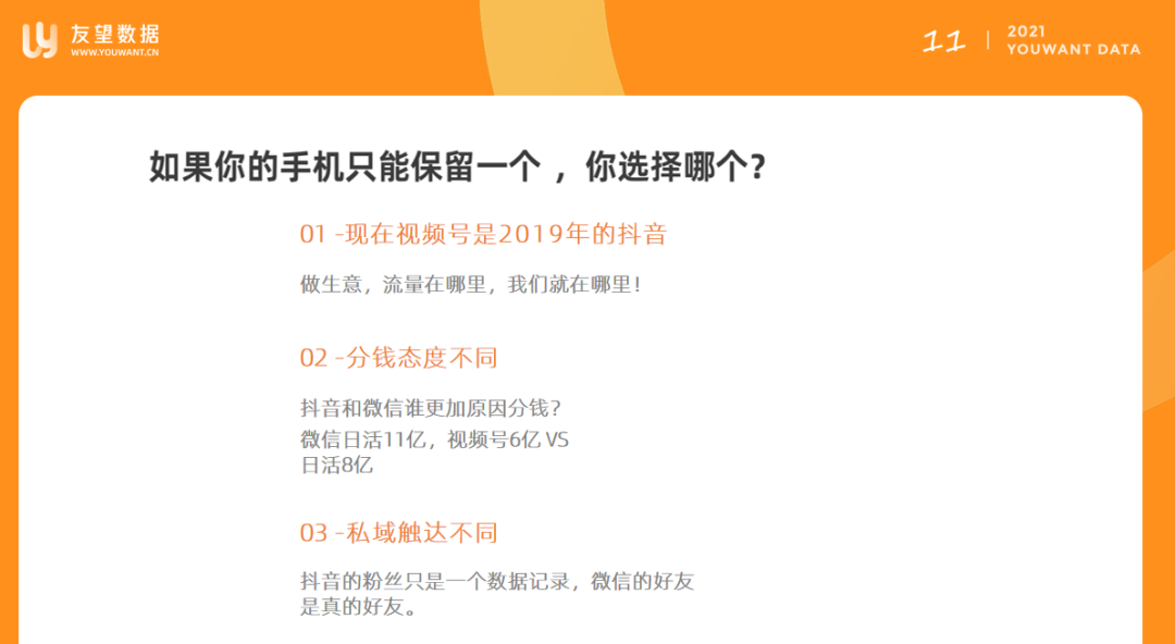 现在做视频号比做2019年的抖音更好的方向是,我们是在腾讯的体系内做的,所以我们跟用户的触达加用户的个人微信,不用那么偷偷摸摸了。
