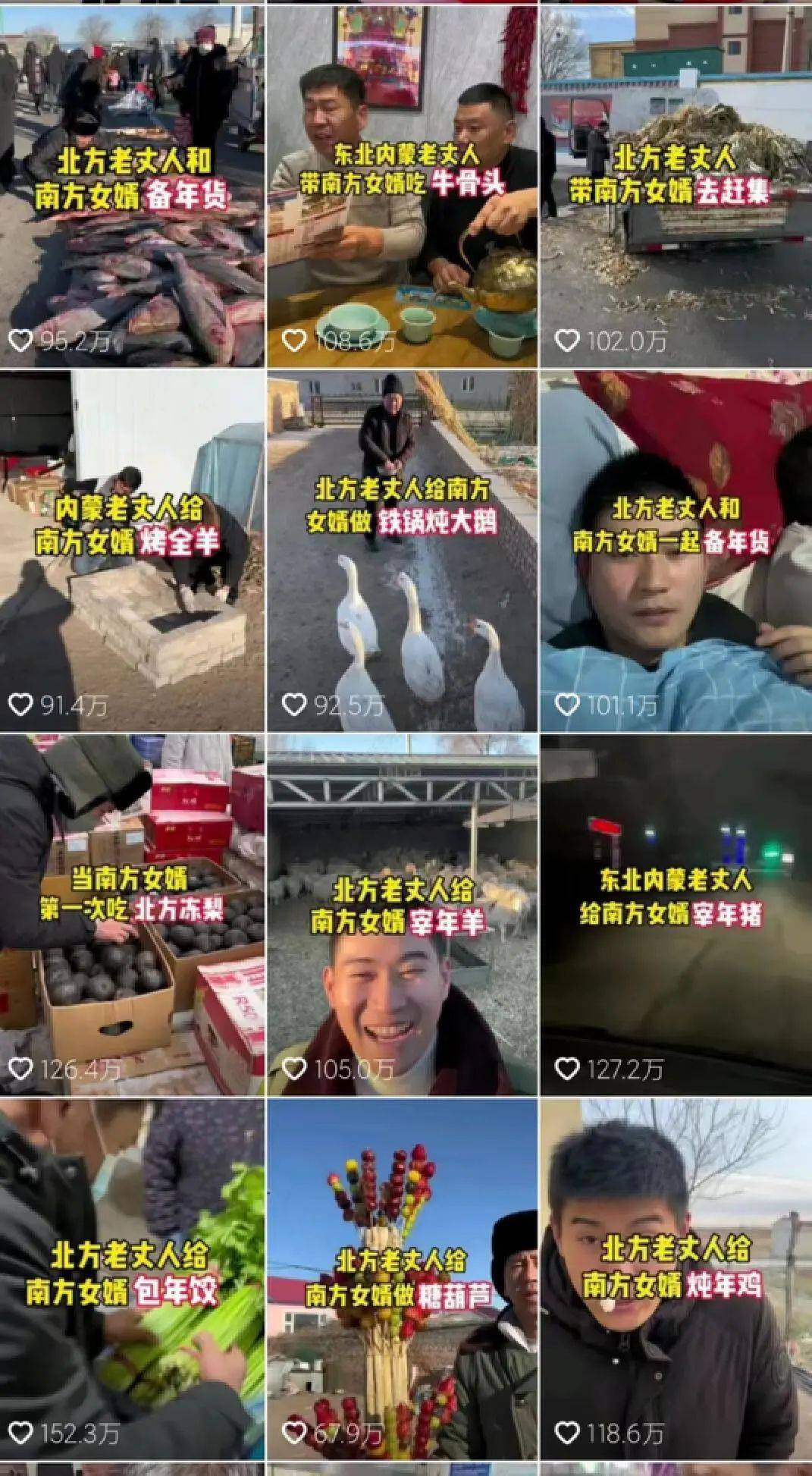 他们围绕这个主题拍摄了上百个视频,既有陪老丈人(北方视角)体验南方生活,又有带女婿(南方视角)感受东北风味的内容。