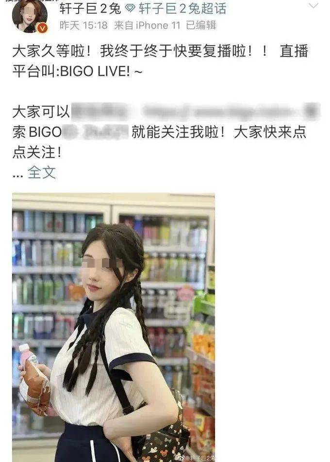 有停播几年的虎牙美女主播“轩子巨2兔”在海外直播平台“BIGO LIVE”复播引发热议。