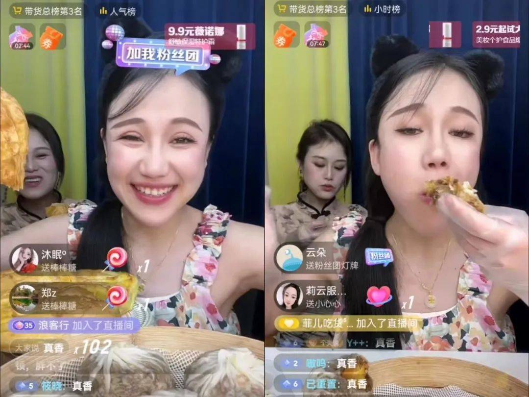 其一,直播间呼唤好内容,而@是可乐所切入的吃播赛道,本身便具备一定的内容基因,一定程度上拉高了直播间用户停留时长。