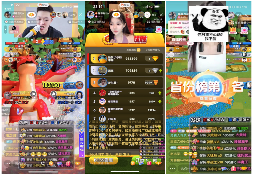快手主播正在直播弹幕玩法产品