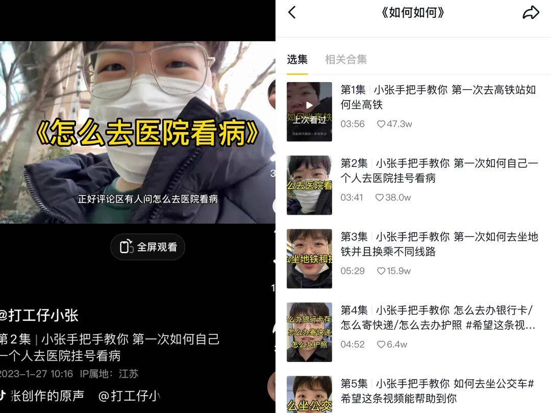 随后,备受鼓舞的小张又发布了一系列《如何如何》视频。比如“第一次如何自己一个人去医院挂号看病”“第一次如何去坐地铁并且换乘不同路线”“如何去坐公交车”“如何坐飞机”“如何订酒店”,以及后期发出的“去大澡堂洗澡搓背需要注意什么”“去烤肉店吃烤肉可以注意些什么”“剧本杀到底该怎么玩”等,每条视频基本都是采取亲身体验+详细讲解的方式,让用户能跟随着她的脚步掌握每一个知识点,而每次科普的内容也都能精准满足一部分人群的实用需求。