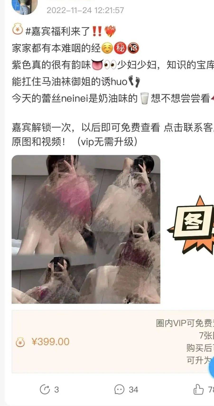 以一位已经被封的主播为例,其在weme中设置的付费内容还有多个级别:99元的报名费可以看日常图片,399元嘉宾贴子可以看一些稍微大尺度的图片,还有2888元VIP。