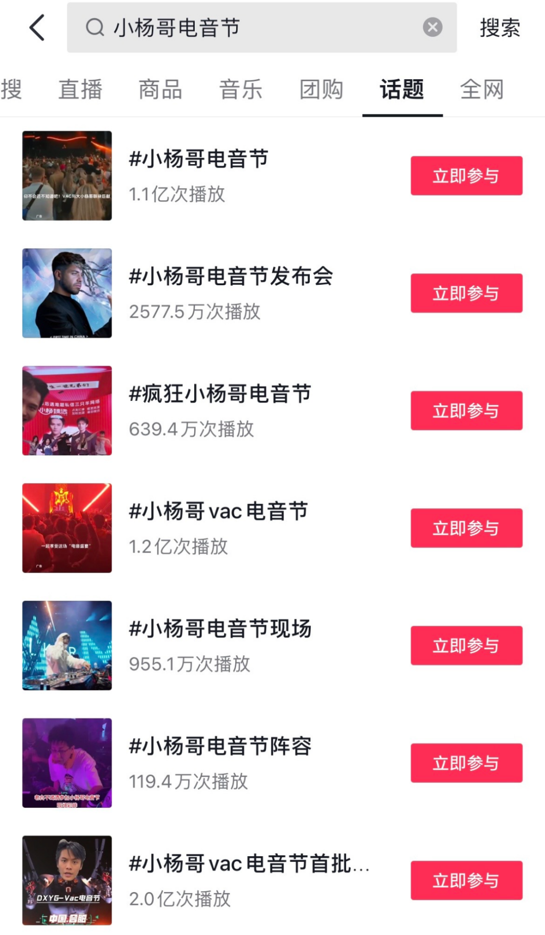 在抖音这个搜索栏上,小杨哥的电音节相关话题热度一路飙升,高达2亿,热度爆棚。