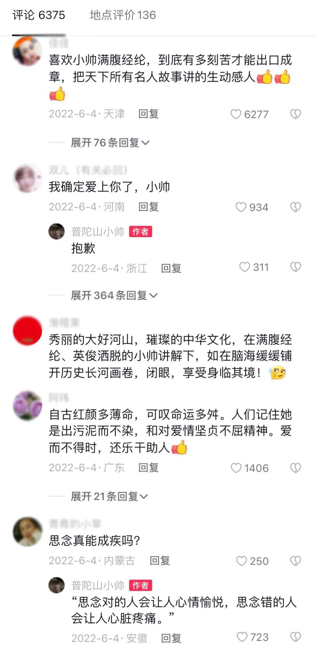 如抖音账号普陀山小帅,就通过讲述与历史文化名人有关的故事,来深挖与景点、诗人、词人等人群与景区背后的故事,他将广为流传的内容讲出了自己的特点,将不为人知的爱情故事讲出了怦然心动。讲文化,他凸显了大气磅礴;说历史,他让更多人体验到了源远流长。