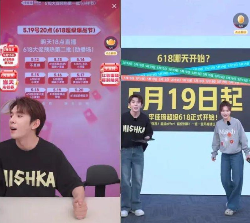 上有政策,下有对策,早在5月19开启预售前,李佳琦就已经想出了不错的法子——保留一天预售期。预售开始前的准备期,李佳琦在直播间,像一位成熟老练的教师那样,反复敲他面前的黑板,并滔滔不绝地向他直播间的一众“学生”讲道:“你们一定要在5月19日来玩,一定要在5月19日来玩。”