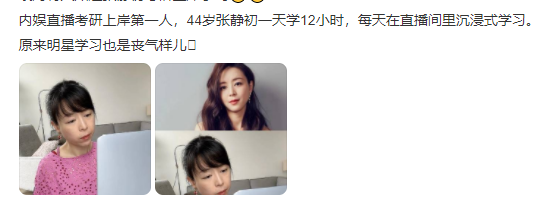 说起张静初,相信很多人都对她有印象,80后的她,在演艺圈沉寂已久,近日,却因为开直播分享学习生活,吸引了将近80万人在线观看,#张静初考研#的词条一度登上微博热搜。有网友留言:“我都睡了一觉了姐姐还在(学习)”“她写作业已写到‘生无可恋’”。