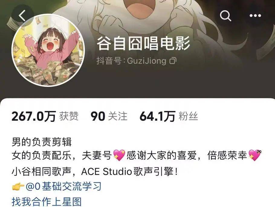 发布者是抖音账号“谷自囧唱电影”,作为一个影视号新人,他从去年12月才开始发布第一条视频。人家用说的,“谷自囧唱电影”选择用唱的方式解说影视,只用了20天时间便涨粉30万,一个月涨粉50万,截至目前抖音粉丝数达到了64万。