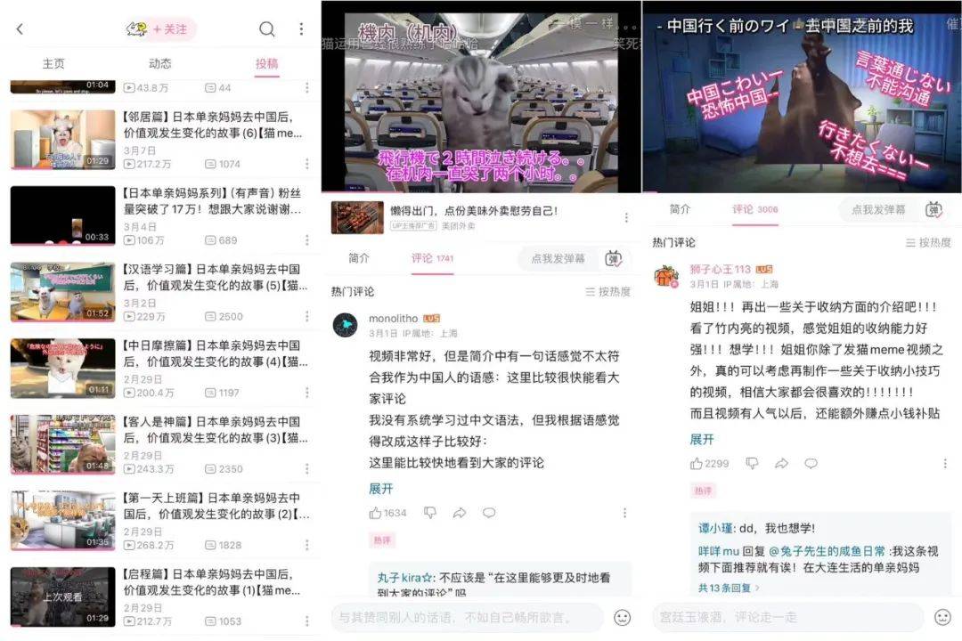 2月29日,B站UP主@ねこのつぶやき-miao(猫的自言自语)在自己的账号上首次更新,连续发了四条视频,讲述自己从日本来到中国生活的新经历和新感受。
